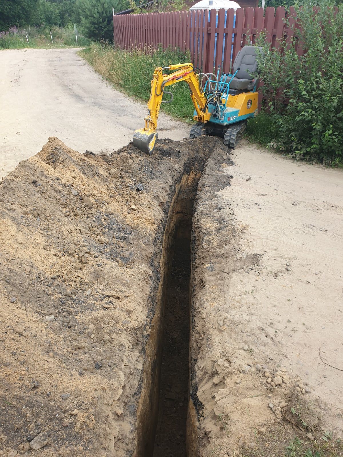Аренда мини экскаватора от собственника. На резиновых гусеницах, проезжает в калитку. Весь спектр земельных работ: чистка, углубление канав, дренаж, траншеи, корчевание участка.