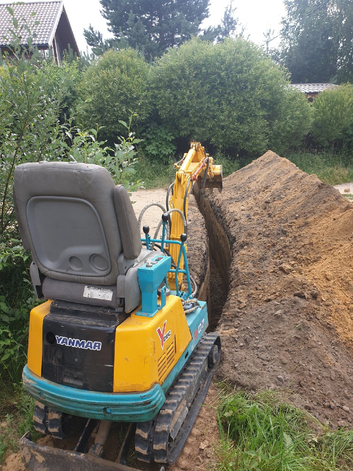 Аренда мини экскаватора от собственника. На резиновых гусеницах, проезжает в калитку. Весь спектр земельных работ: чистка, углубление канав, дренаж, траншеи, корчевание участка.